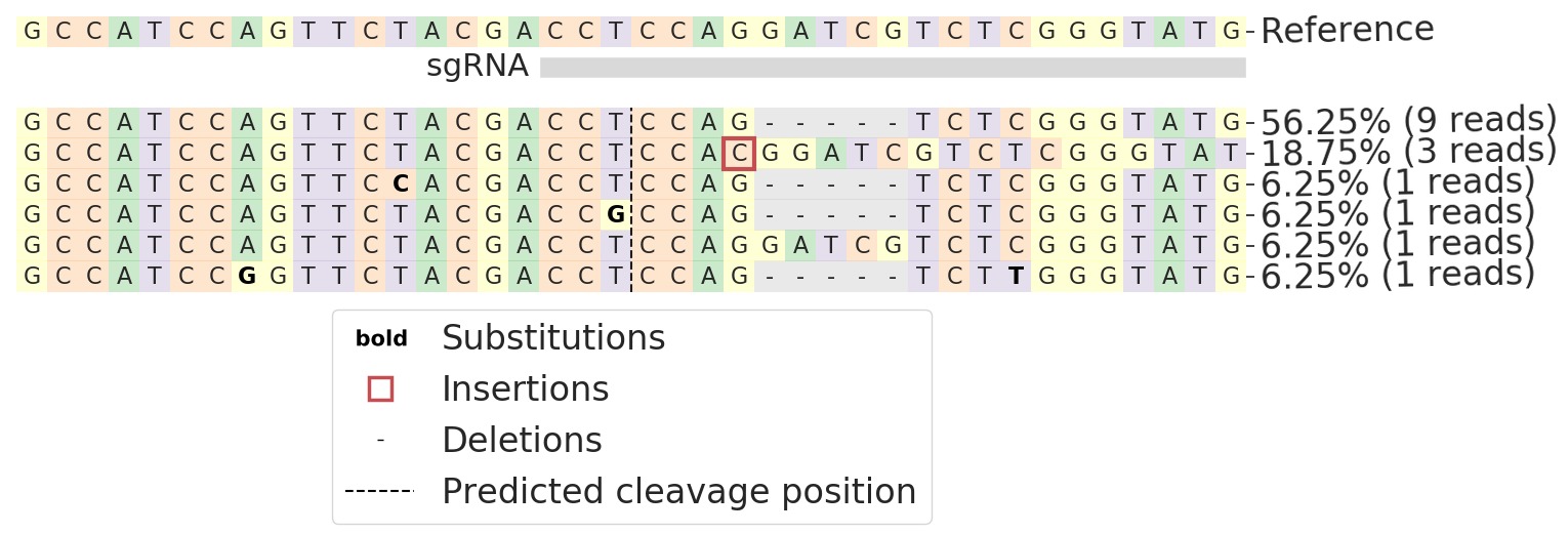 鉴定结果有突变,5bp缺失/C插入